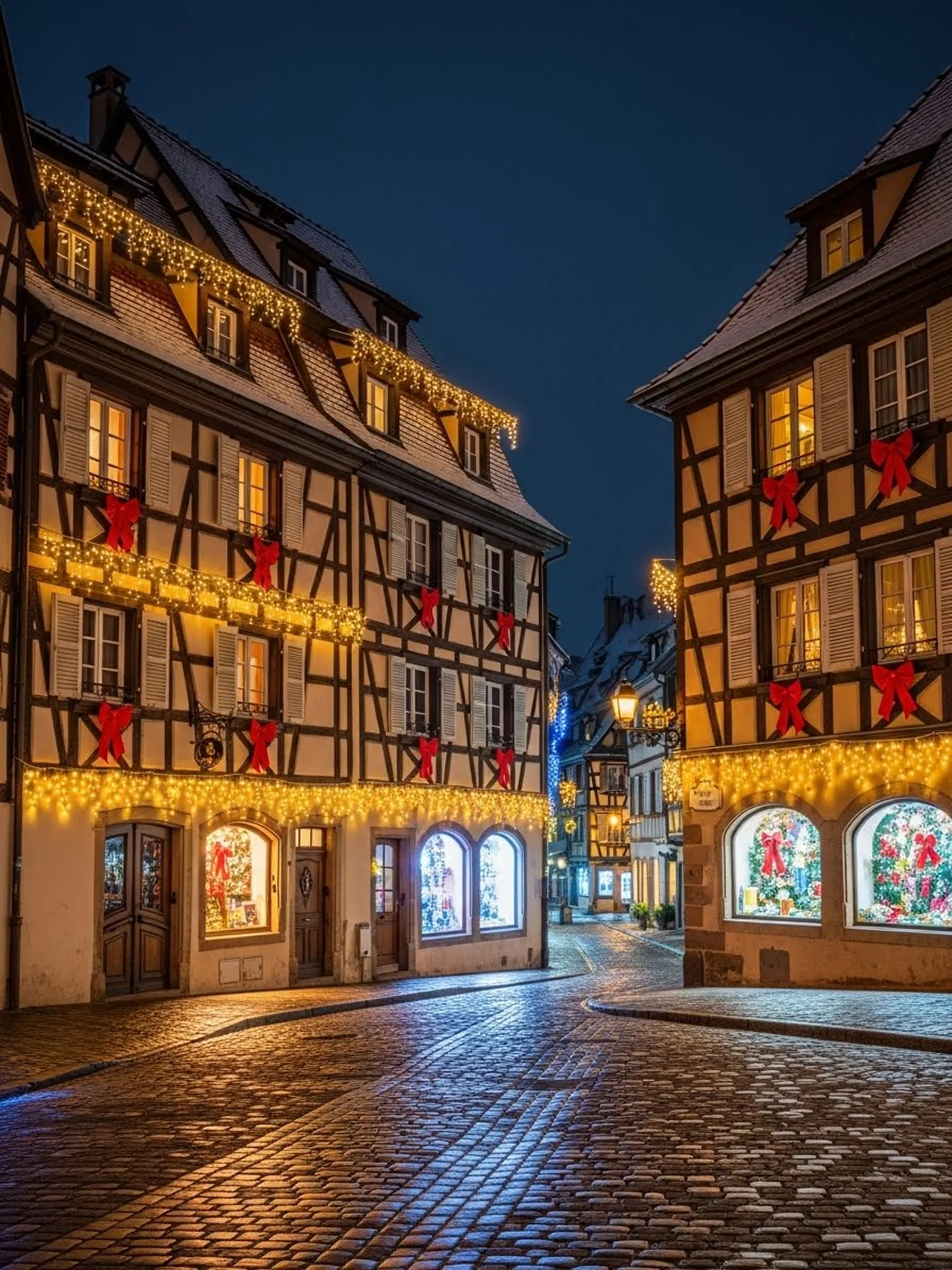 Colmar se ilumina por completo en diciembre y sus casas de colores, puentes y mercados crean una postal perfecta en cada esquina. Es uno de los destinos más populares en redes por su atmósfera mágica y familiar.