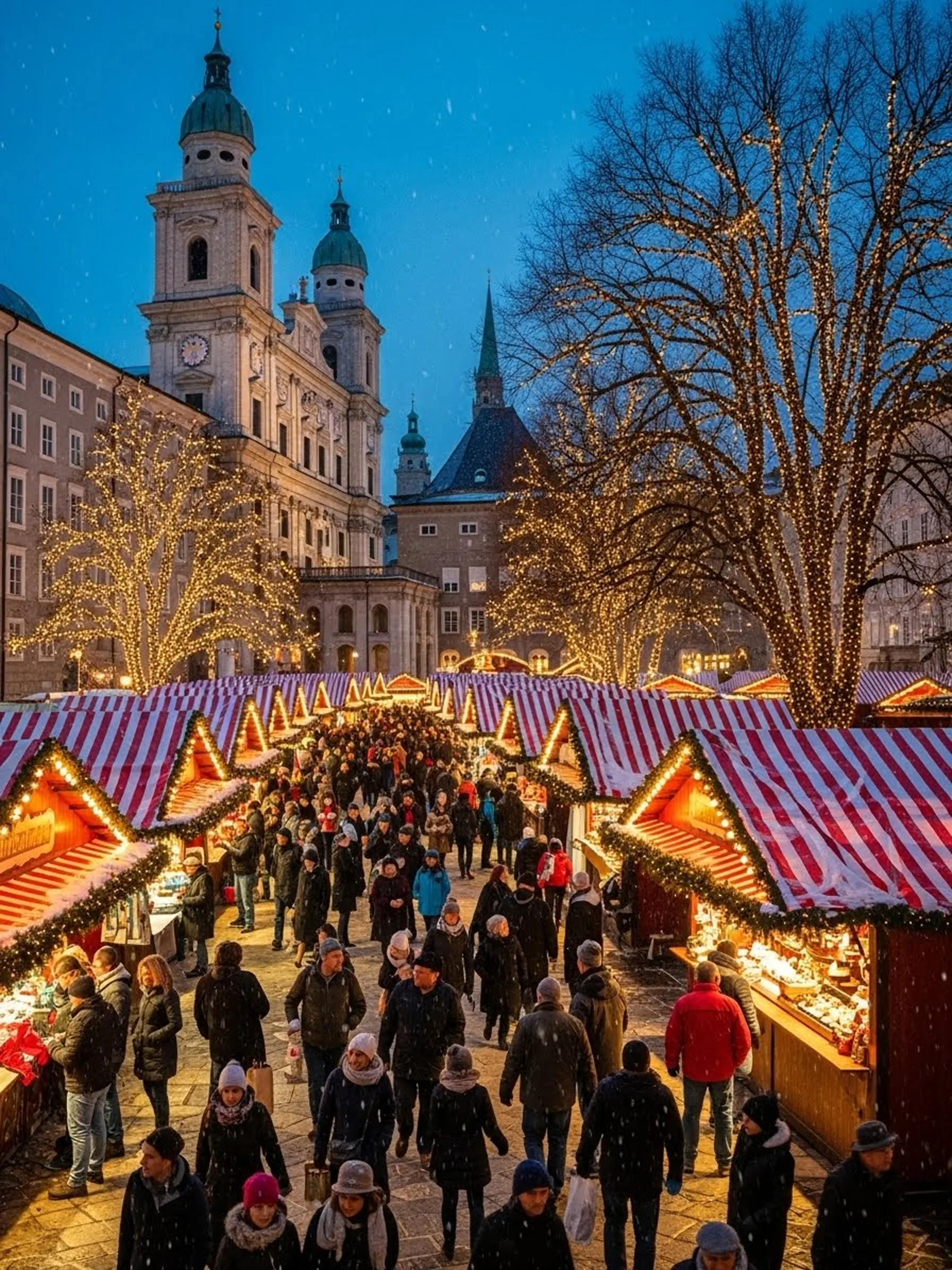 Salzburgo acoge algunos de los mercados navideños más antiguos de Europa, como el Christkindlmarkt, que data del siglo XV y conserva muchas tradiciones originales.